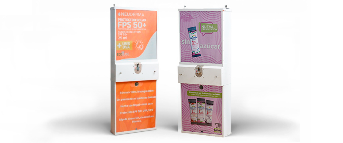 La versión ECOTUBE está diseñada para dispensar un solo tipo de producto, ideal para ventas de alto volumen y marcas que buscan probar mercado o lanzar productos pocket ¡Cualquier cosa que quepa en su tubo dispensador es posible!
